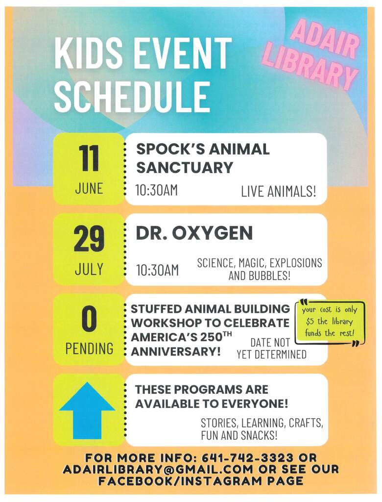 Infrastructure and Services: Adair offers essential services, including a public library, medical facilities, and emergency services. The town is also committed to maintaining its infrastructure, with ongoing projects to improve roads and public spaces.